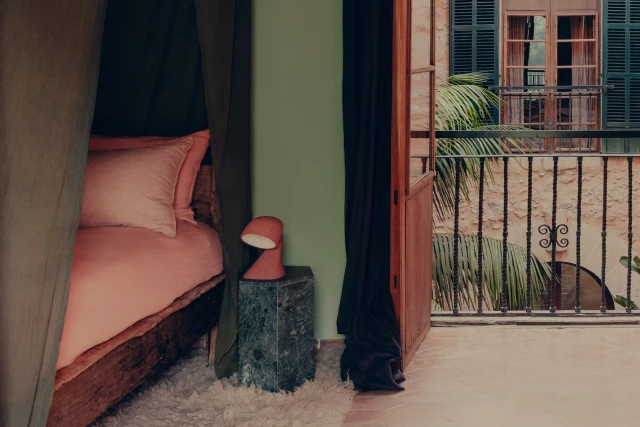 La Palmier is a spacious Double Room on the first-floor, off the courtyard. It has a bedroom with living area, fabulous bathroom, courtyard views, and palm fronds peeking through the windows. Good for green thumbs/lovers of tropical space vibes.