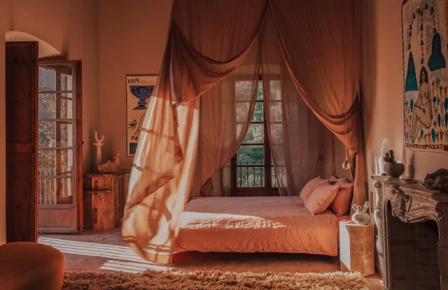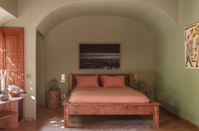 A spacious Superior Double Room on the first-floor, off the courtyard. The Sage has two French balconies overlooking the adjacent mountains; a generous bathroom; mountain, garden, and courtyard views; plus ceilings as high as the stars.